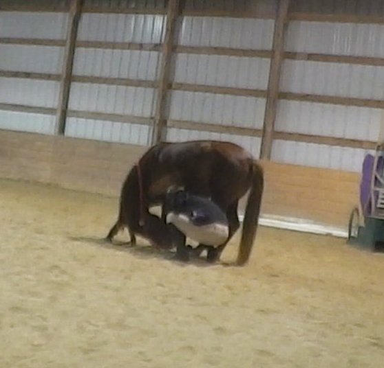 I didn't get Chili hitched to drive yet. I was taking lessons and had her going in the shafts. We had a setback and then my lesson fund money dried up. She is however, ground driving just about anywhere, and we did have a pleasant showing at an open show in ground driving obstacles she had never seen before. She placed middle of the pack over broke driving horses, so that was pleasing.